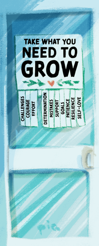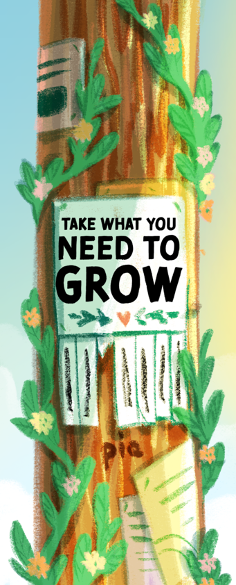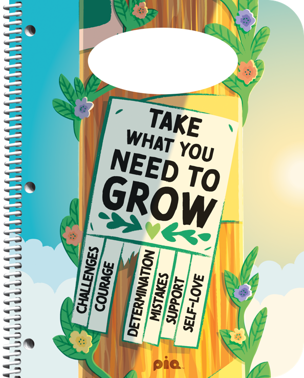 Take What You Need is a bright, illustrative planner cover about hope and support. It is an eye-catching and inspiring piece for kids to have on the front of their agendas, serving as a kind reminder that they can ask and take what they need each day.