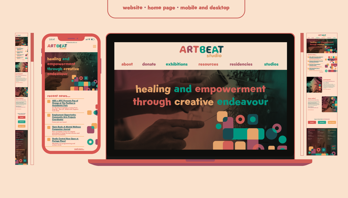 The community organization I chose to create a rebrand for was Artbeat Studio. They are a Winnipeg based and founded non-profit arts organization focusing on people that deal with mental illness, established in 2004. They provide residencies, community programming, gallery space, and studio space. They help to empower and aid in the recovery of individuals dealing with mental illness through art.