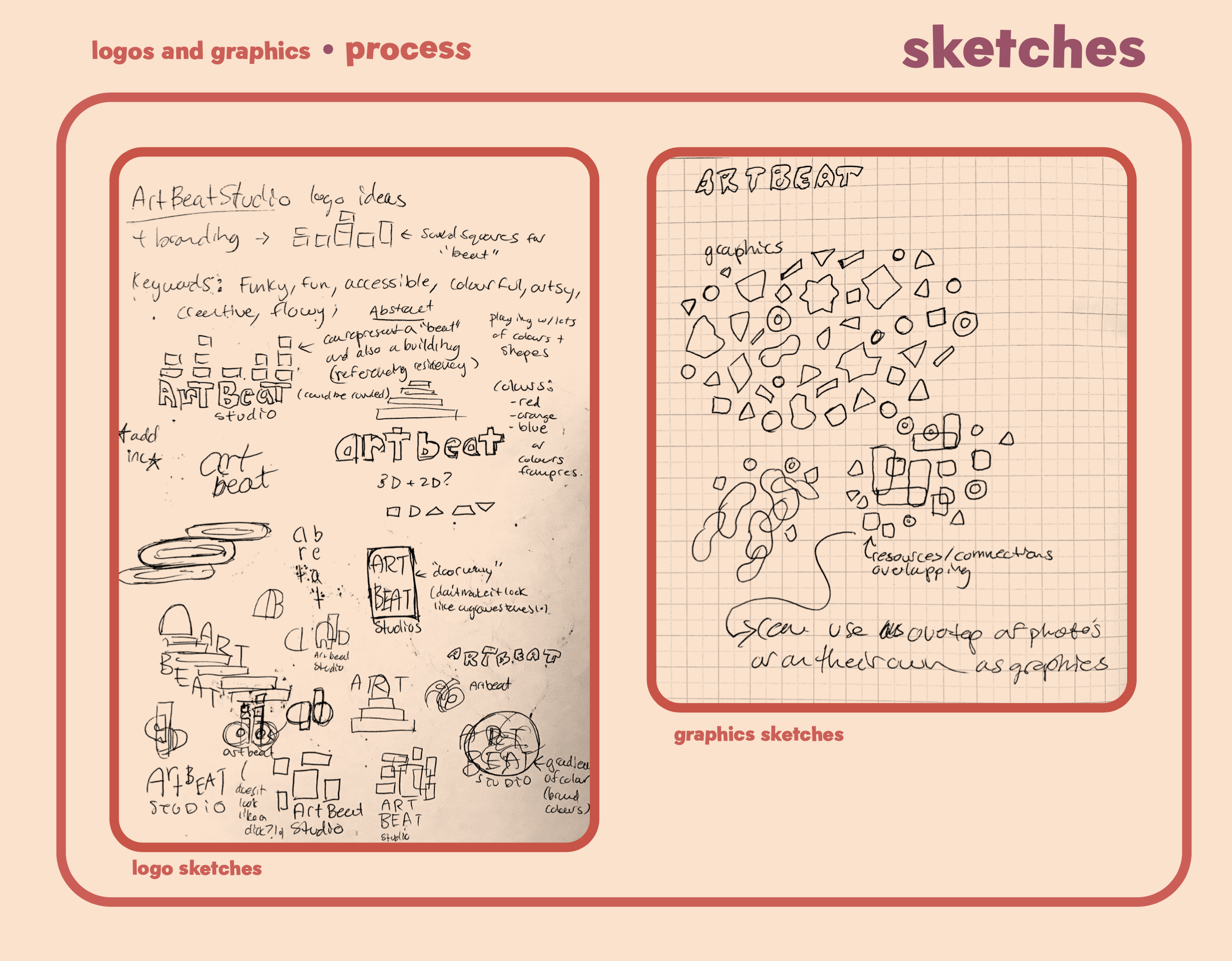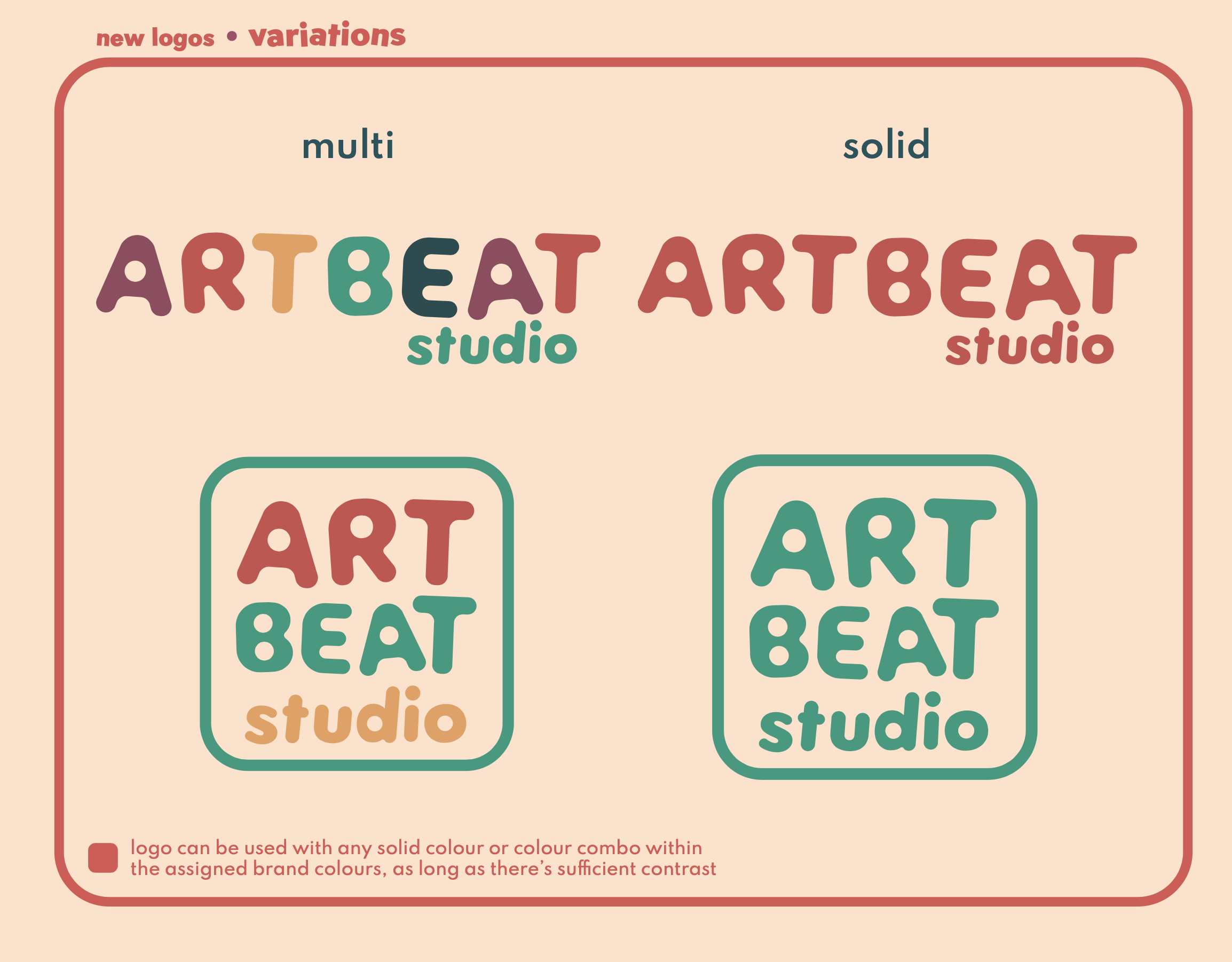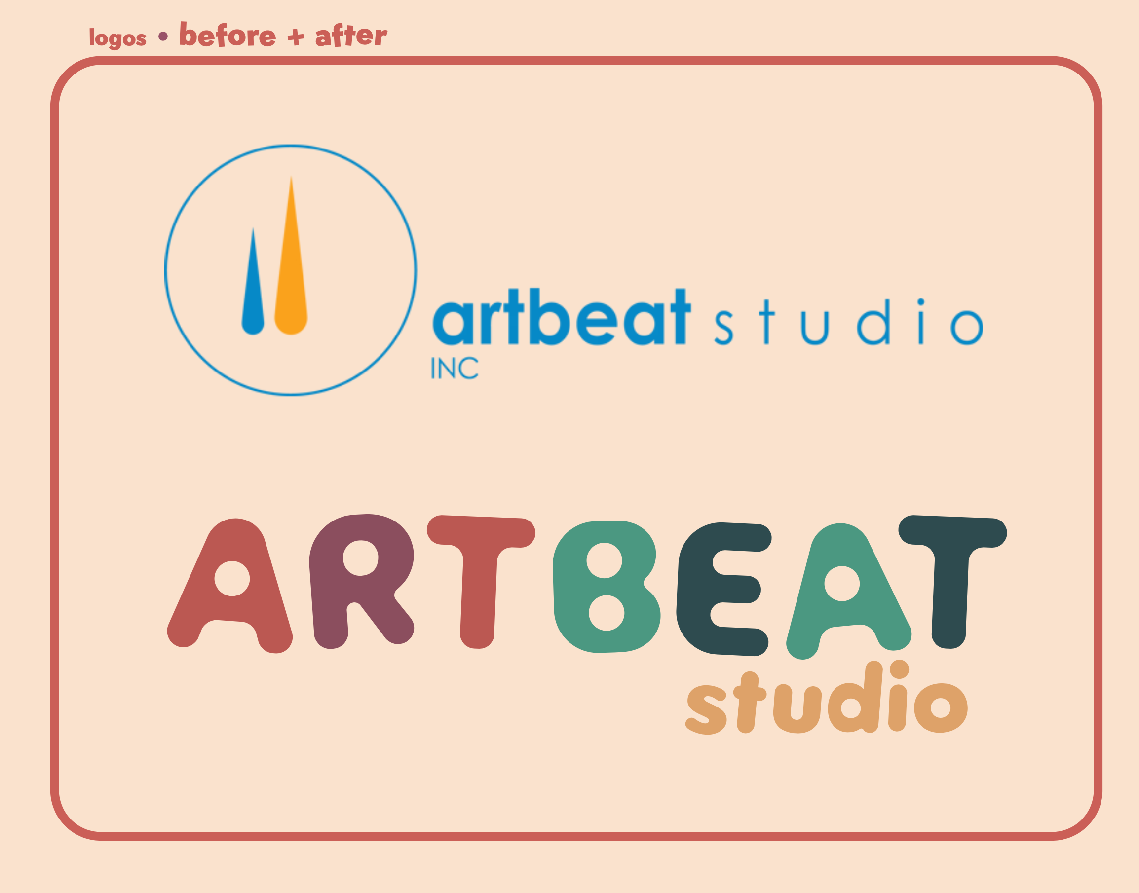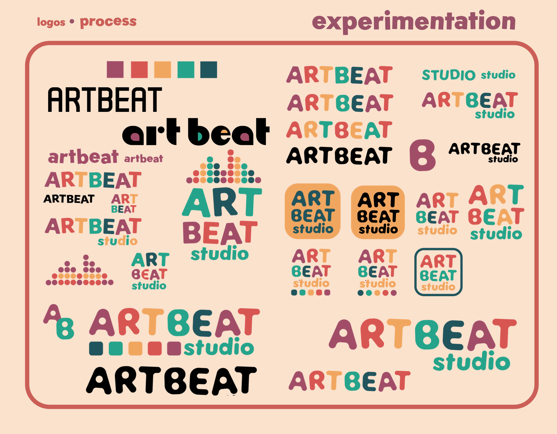 I decided to do a logo/brand/identity refresh, and website redesign for Artbeat Studio. The first steps were to do some sketches, create a moodboard, design a new logo, then a branding kit and new visual elements. The new logo is bold and refreshing, can be used in different variations depending on the application, and speaks to what Artbeat does. The new branding is flexible and playful, while still grounding Artbeat in the professional space.