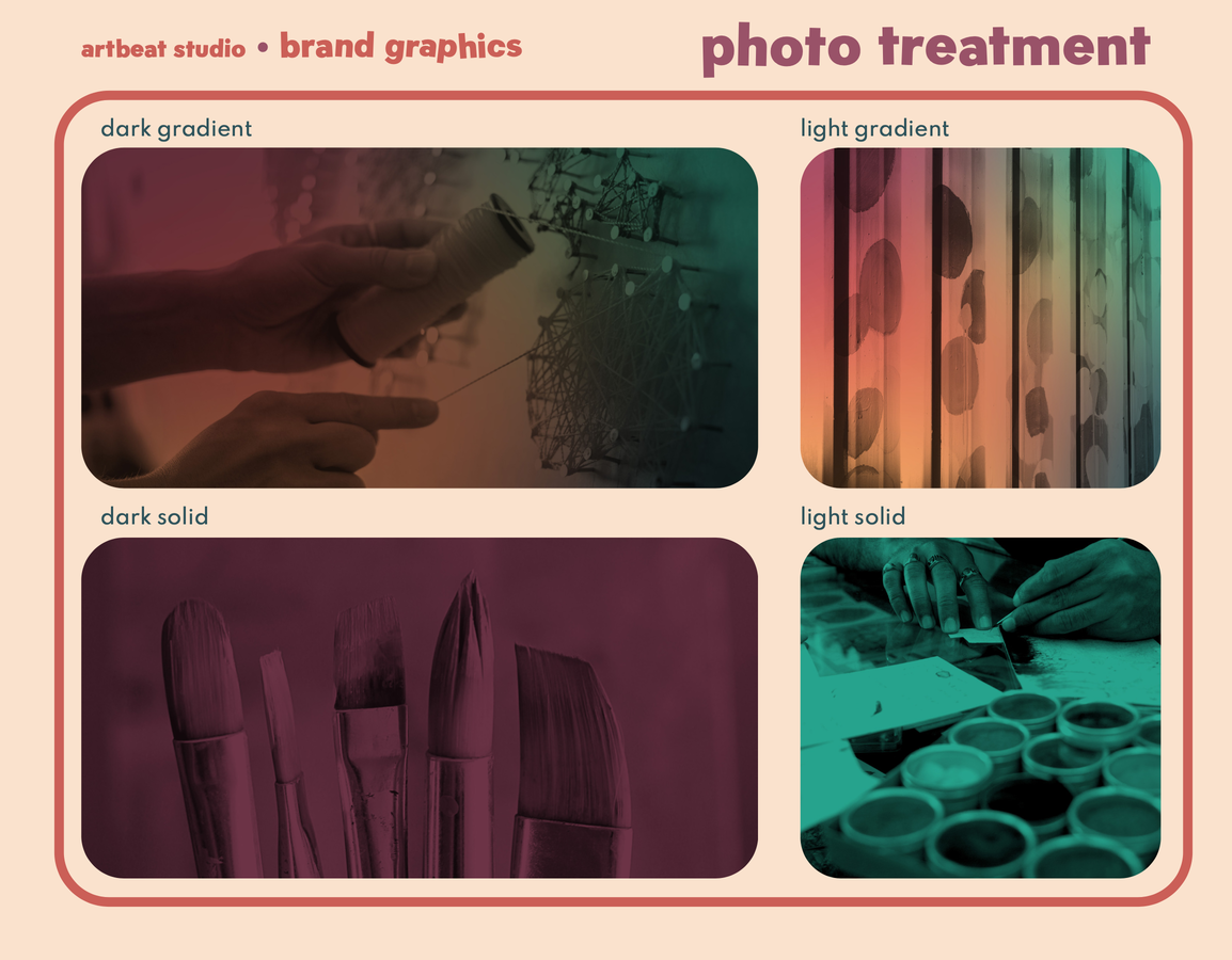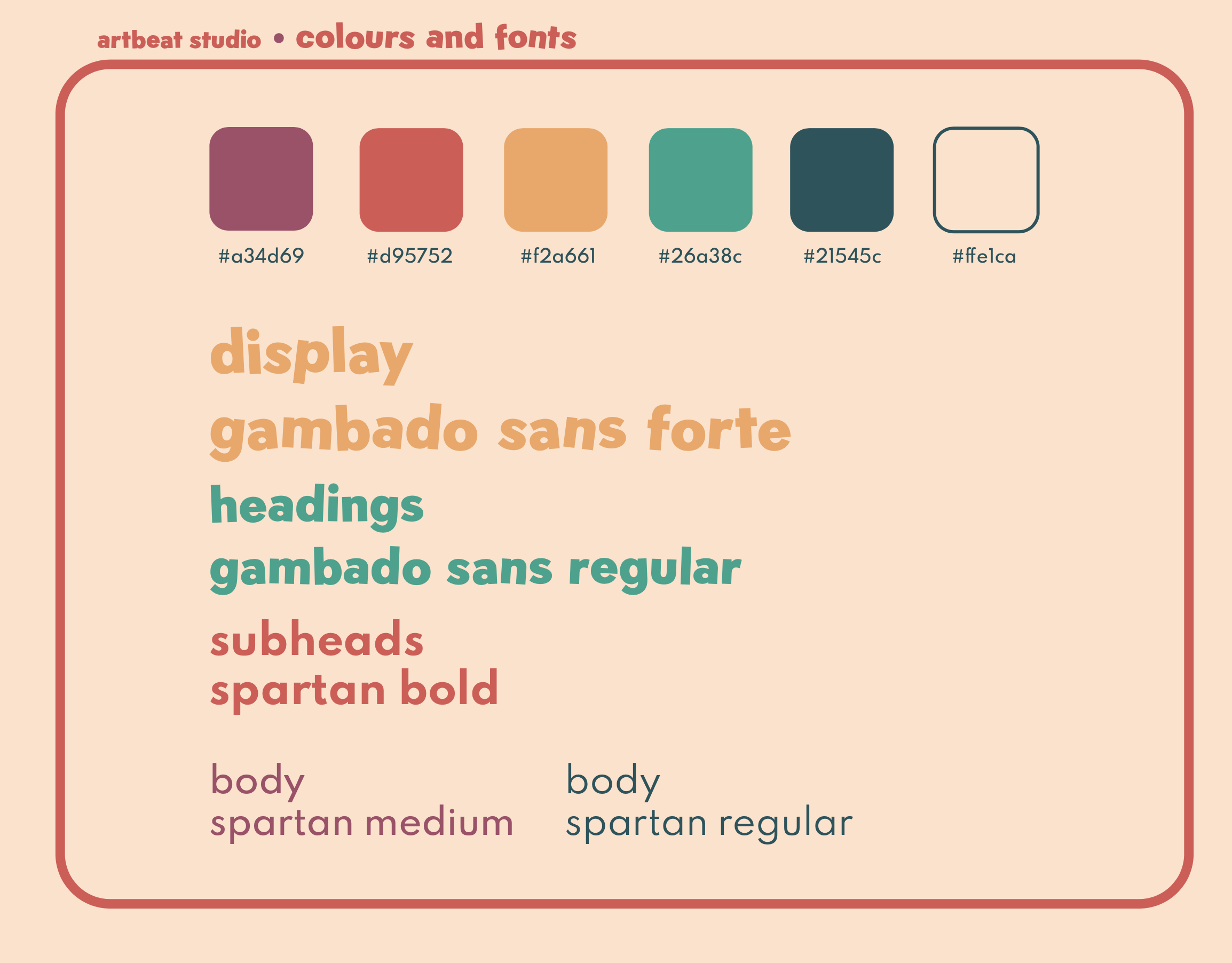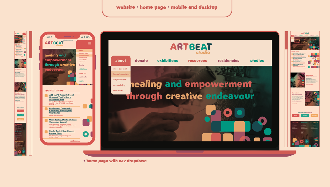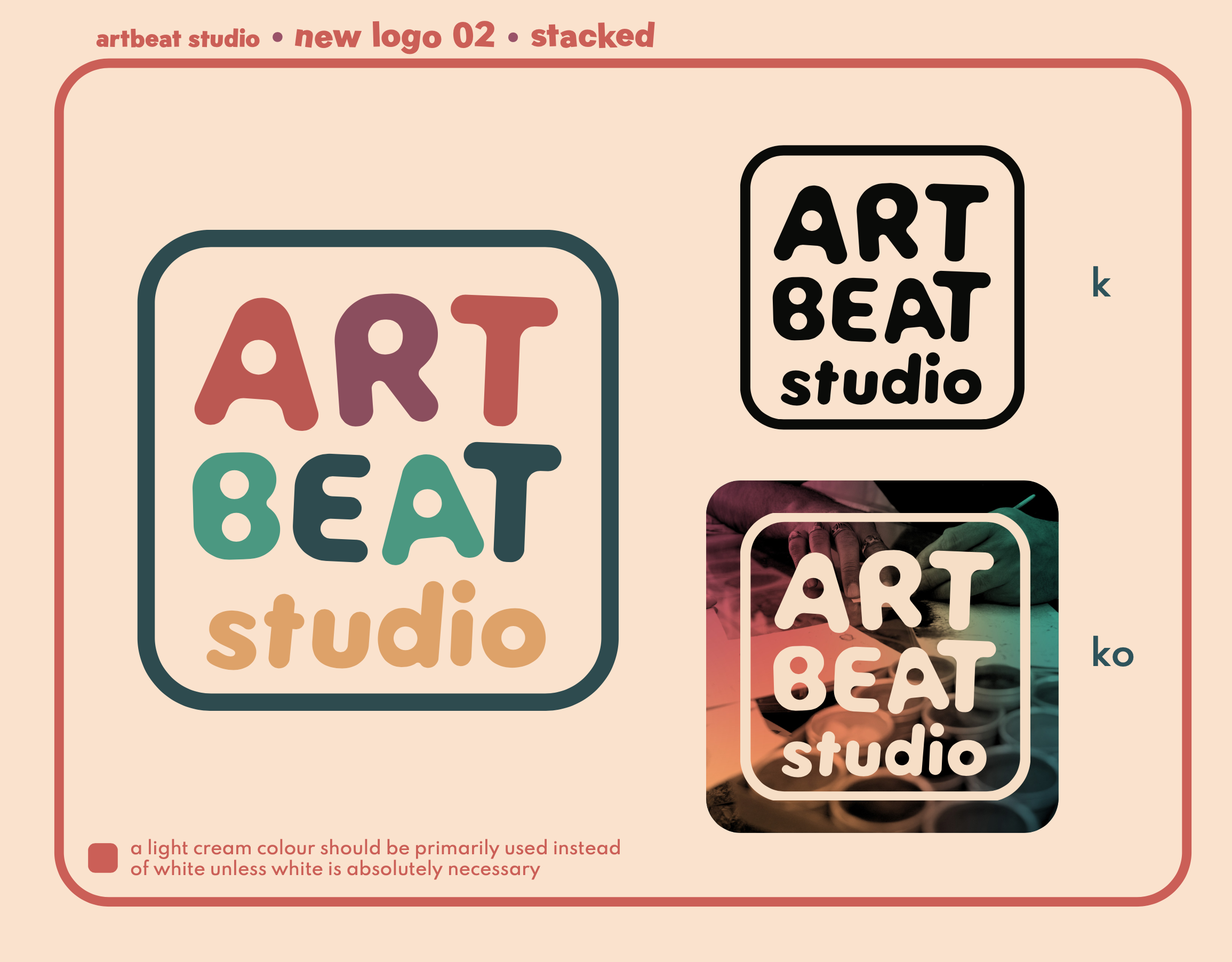 I decided to do a logo/brand/identity refresh, and website redesign for Artbeat Studio. The first steps were to do some sketches, create a moodboard, design a new logo, then a branding kit and new visual elements. The new logo is bold and refreshing, can be used in different variations depending on the application, and speaks to what Artbeat does. The new branding is flexible and playful, while still grounding Artbeat in the professional space.